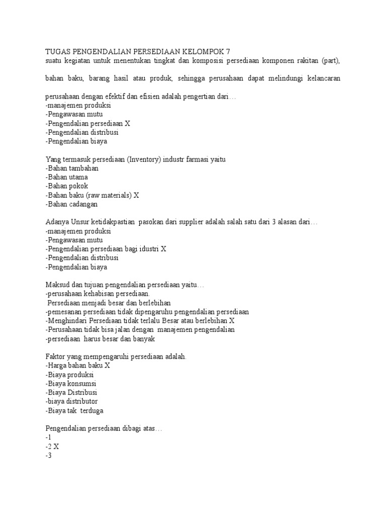 Pengertian pengendalian dan tujuan fungsi pengendalian fungsi pengendalian (controlling) dalam manajemen adalah fungsi yang paling terakhir dari proses manajemen. Pengendalian ini bertujuan untuk mempertahankan jenis dan jumlah persediaan sesuai pelayanan agar tidak terjadi. Prinsip dalam mengendalikan persediaan sangat diperlukan dalam manajemen persediaan. Sistem pengendalian intern persediaan barang dagang pada minimarket indomaret kelurahan pagar agung kabupaten lahat belum terlaksana dengan baik karena masih belum ada fungsi gudang.sistem otorisasi yang belum independen, praktik yang sehat belum terlaksana dengan baik. Hal tersebut dinamakan pengendalian persediaan (stock control).